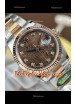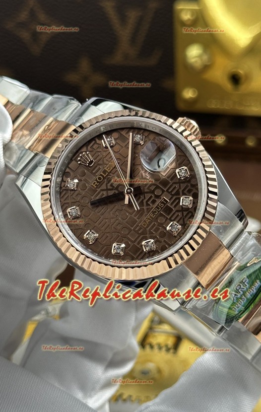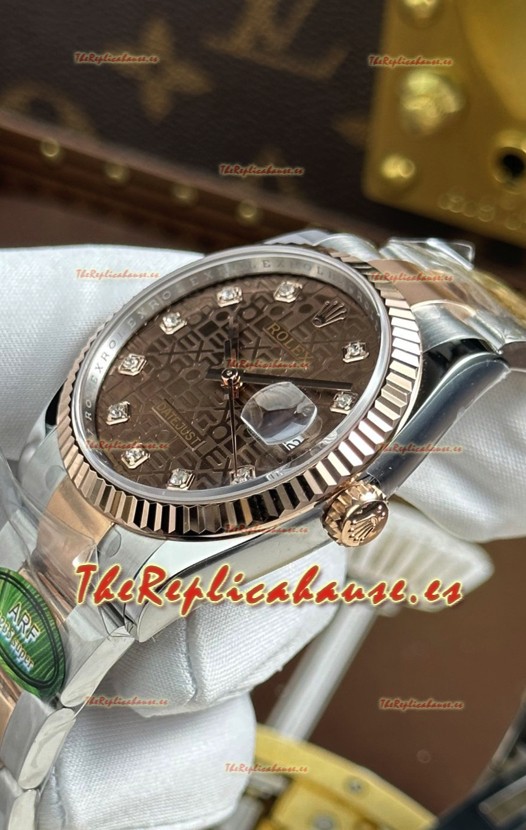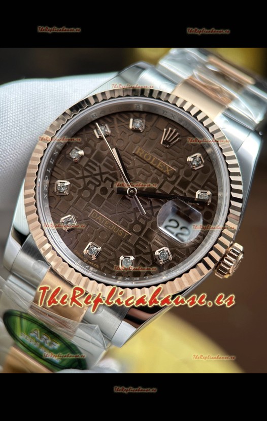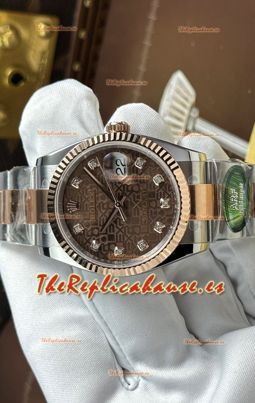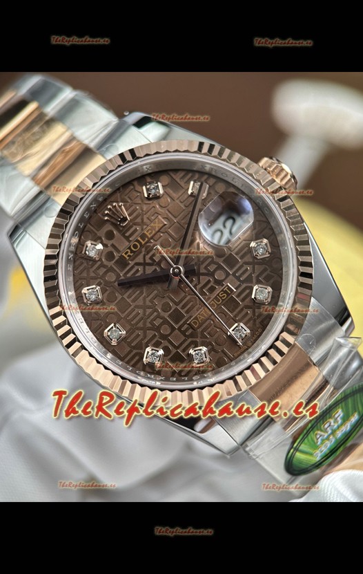 Rolex Datejust Super Clone Cal.3235, Dial Marrón Computarizado, Caja Dos Tonos Oro Rosado, 36 mm