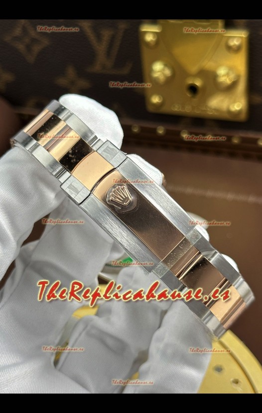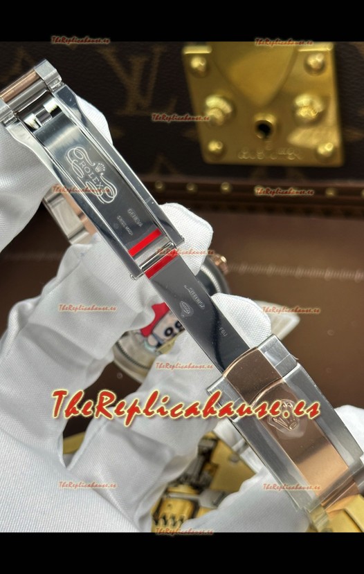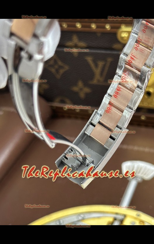 Correa de Acero Inoxidable 904L en Dos Tonos chapada en Oro Rosado 18K con Nuevo Cierre Hebilla Desplegable estilo Rolesor, eslabones de los extremos coinciden al ras con la Caja. - Una versión Muy Mejorada de la Correa Datejust