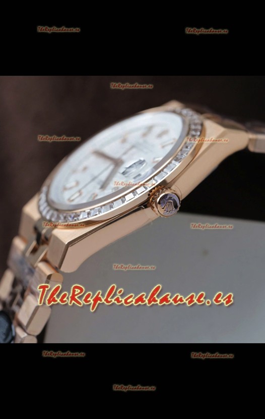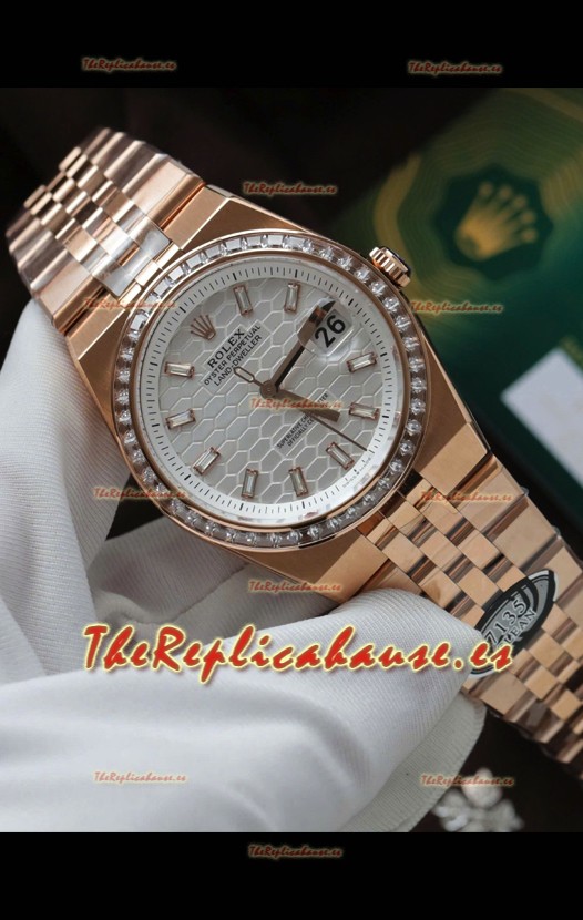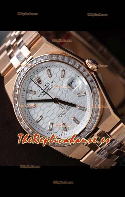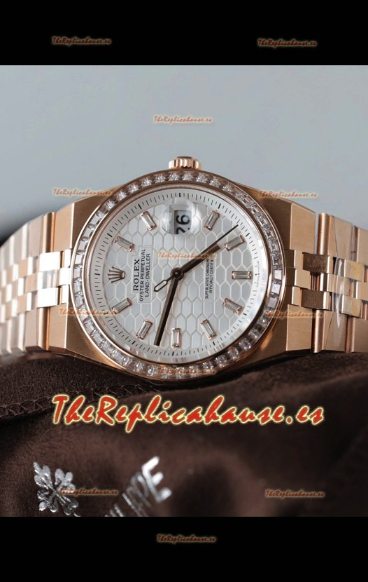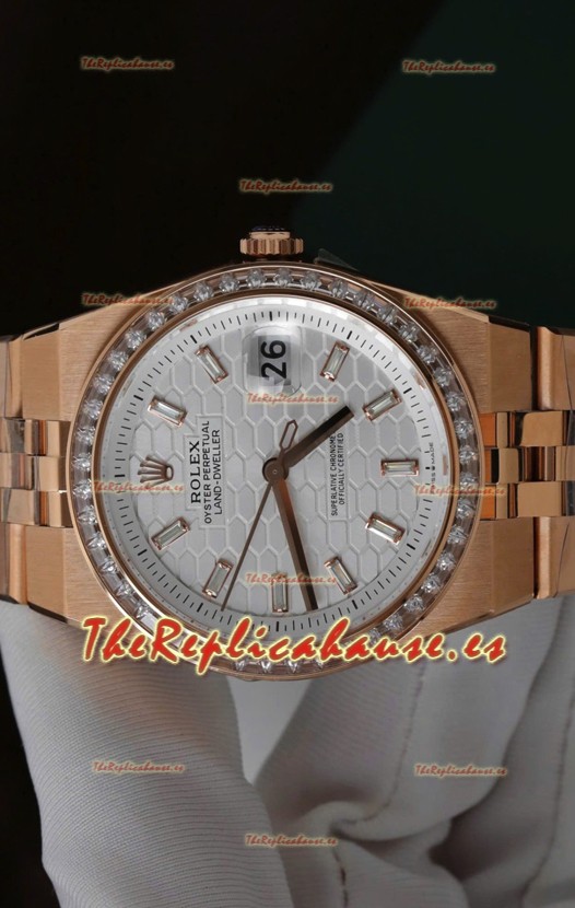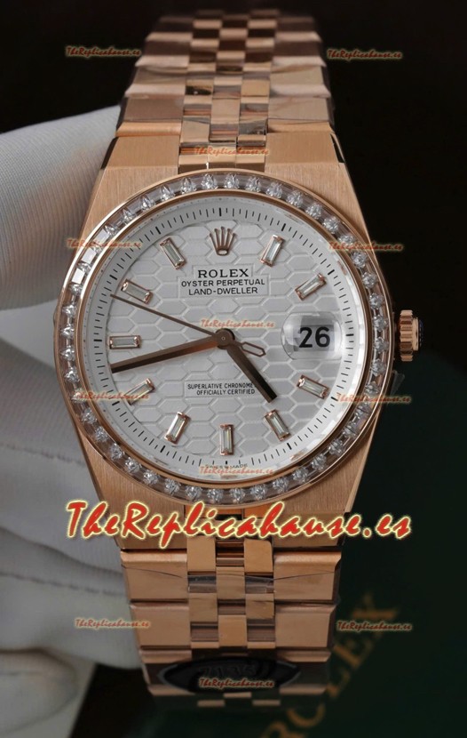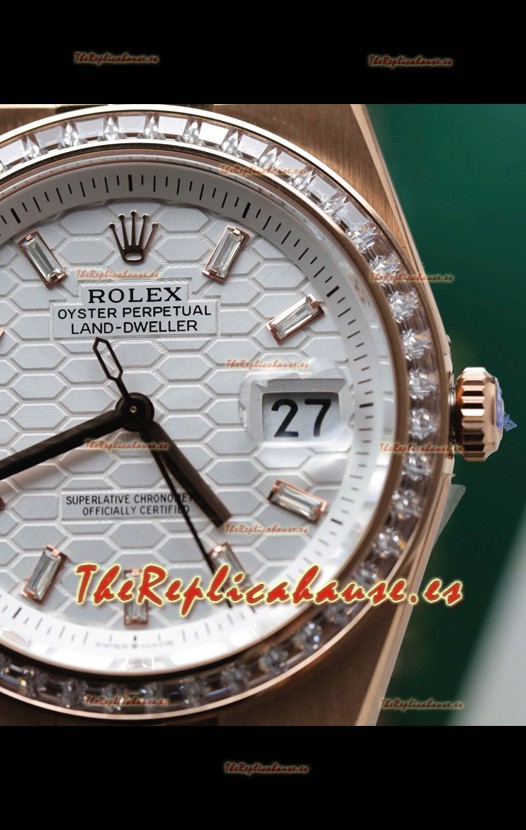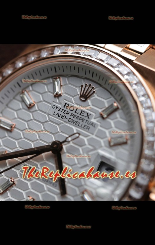 Reloj Réplica Suizo Rolex Land-Dweller 127335 Acero con Diseño de Panal de Abeja Oro Rosado 40MM