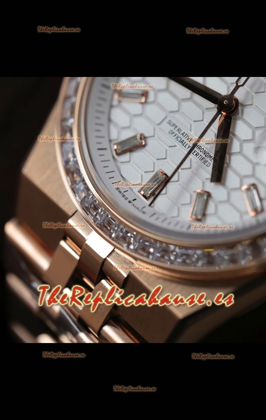 Dial Acero Diseño Panel de Abeja con Indicador de Fecha. Bisel de Diamantes