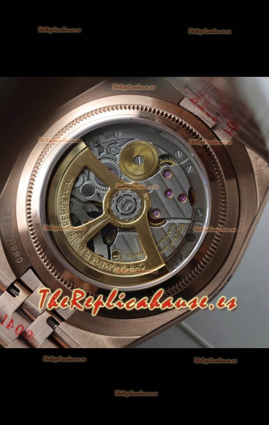 Caja Acero Inoxidable 904L chapada en Oro Rosado 18K y Bisel completado con todas las Marcas/Grabados Rolex