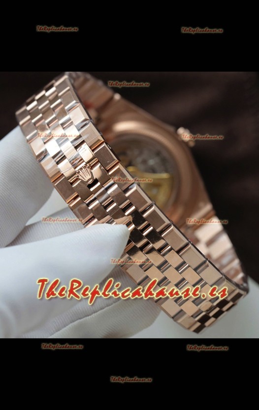 Correa Acero Inoxidable 904L chapada en Oro Rosado 18K con Cierre Plegable. Los eslabones de los extremos coinciden al ras con la Caja. - Una versión Muy Mejorada de la Correa Datejust