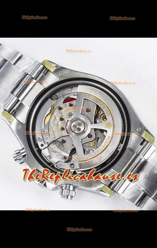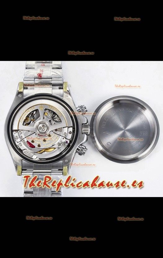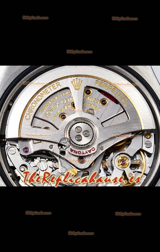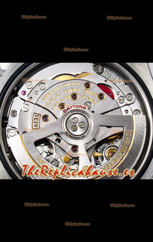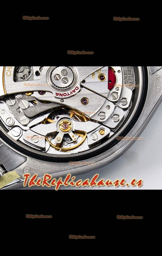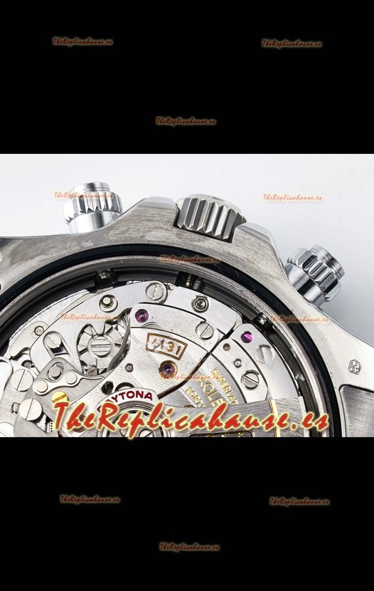 Genuino Movimiento Cal.4131 construido desde cero sin modificaciones, Platos y Rotores chapados en Platino como en el Original. El mismo Movimiento que encuentras en los Relojes Rolex Daytona