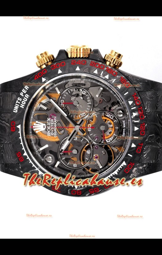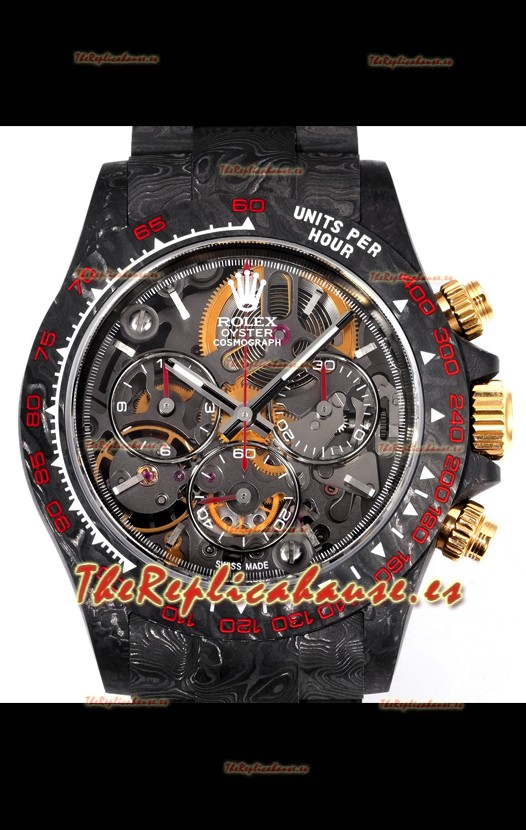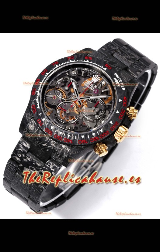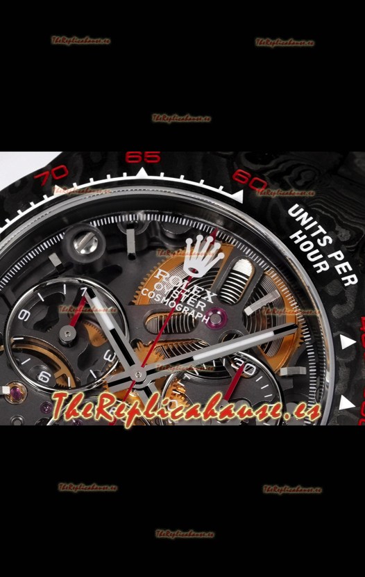 Rolex Daytona Blaken Carbono Negro Reloj Réplica Suizo Espejo 1:1 Dial Skeleton Movimiento Cal.4130