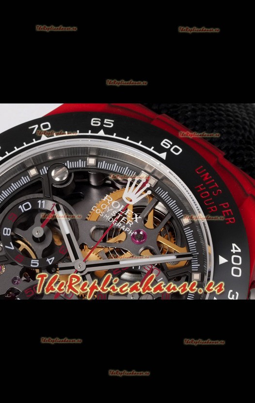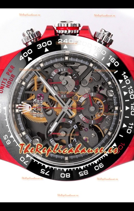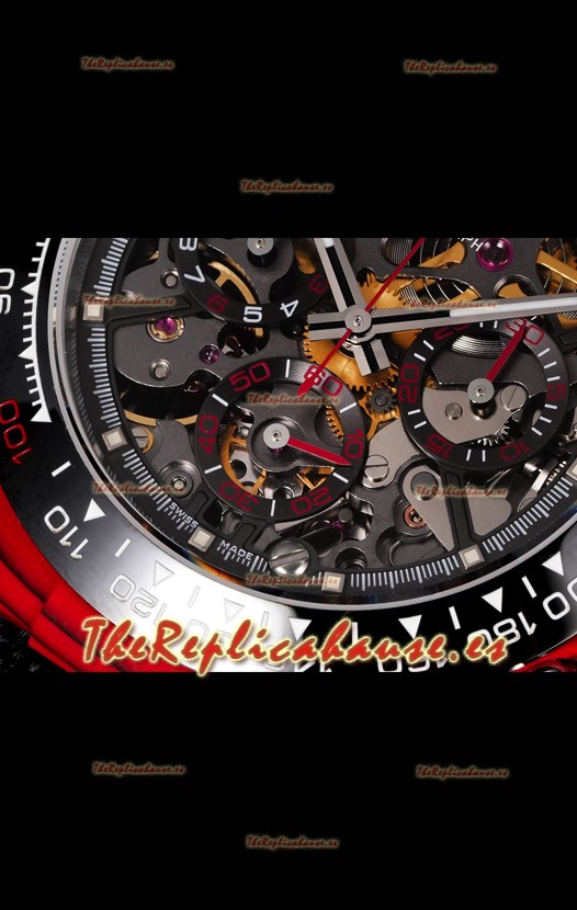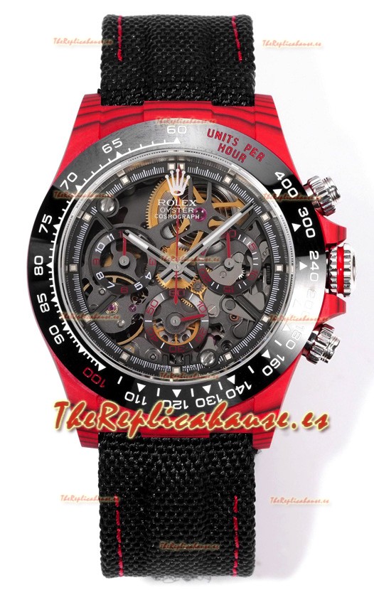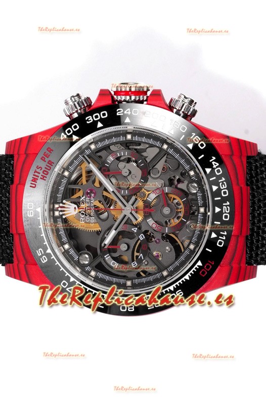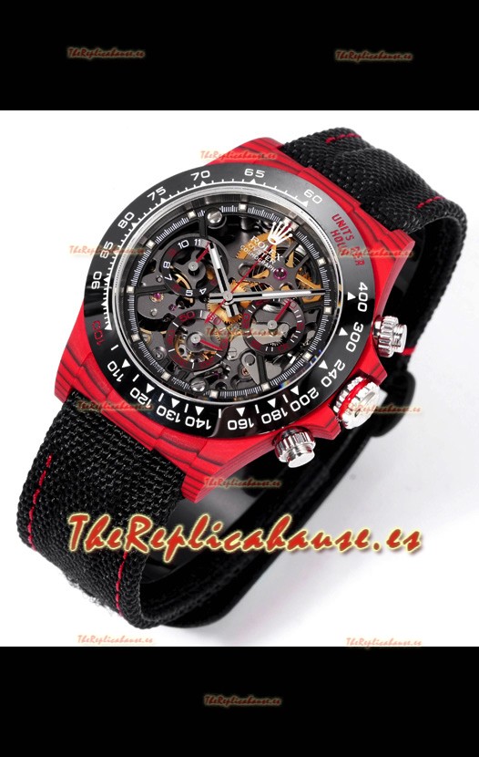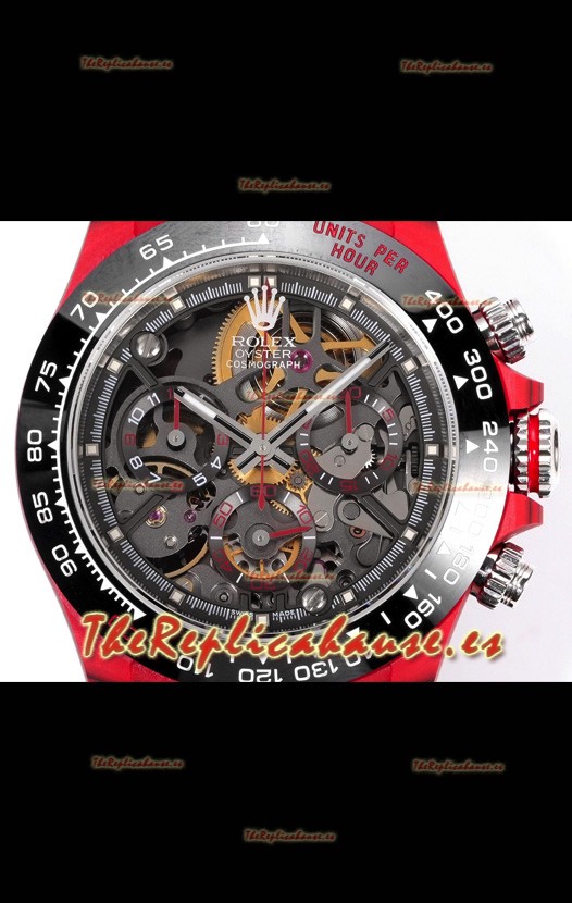 Rolex Daytona Blaken Red Carbon Reloj Réplica Suizo Espejo 1:1 Dial Skeleton Movimiento Cal.4130