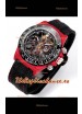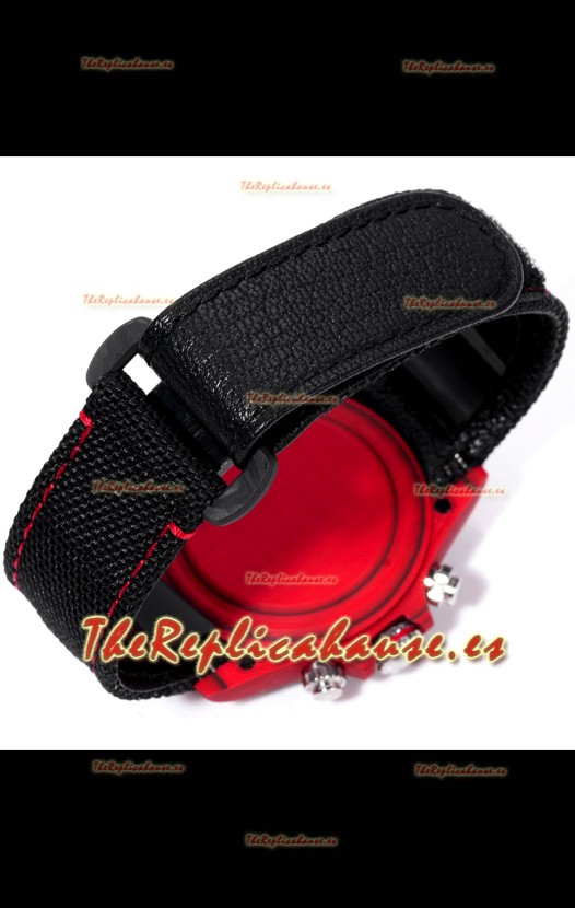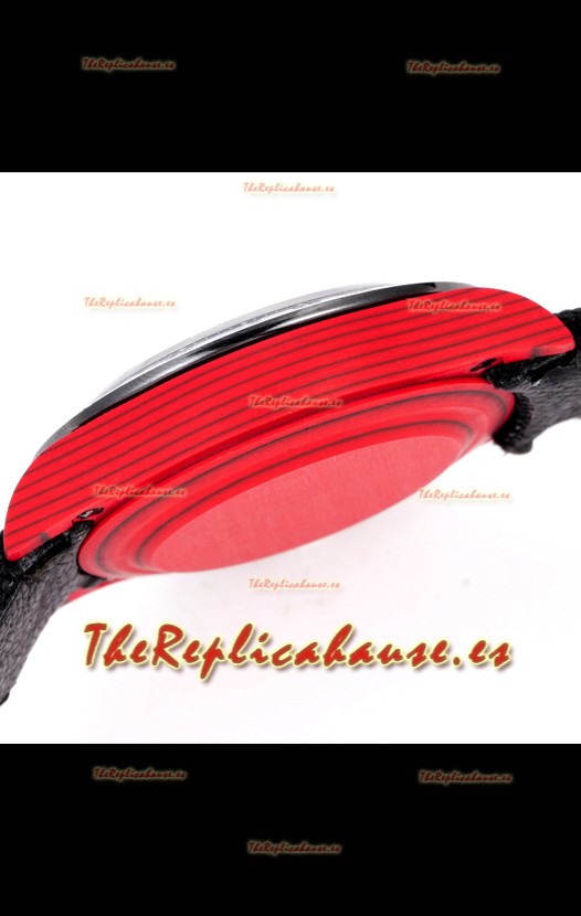 Caja de Carbono Rojo Galvanizada con Marcadores y Grabados Rolex como el Auténtico. Bisel Negro de Cerámica