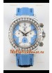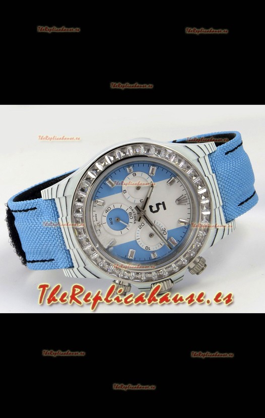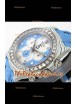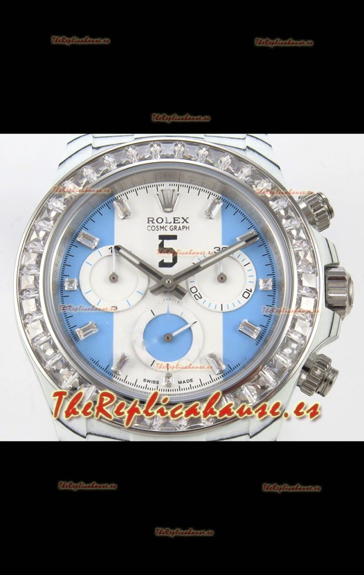 Dial Azul/Blanco. Tres Sub Diales Funcionales que funcionan en conjunto con la función de cronómetro, como en los originales. Sapphires Bezel