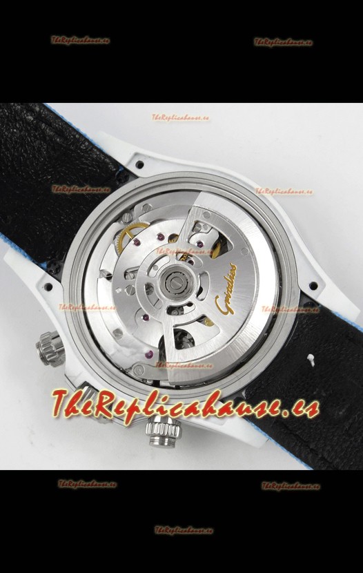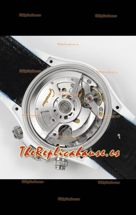 Genuino Movimiento Cal.4130 construido desde cero sin modificaciones, Platos y Rotores chapados en Platino como en el Original. El mismo Movimiento que encuentras en los Relojes Rolex Daytona