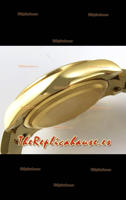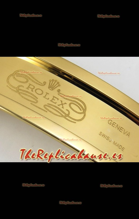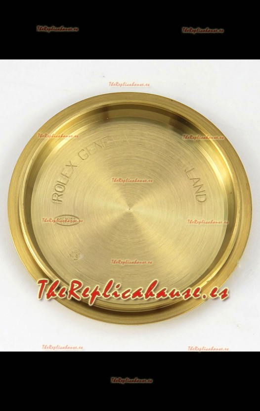 Caja Acero Inoxidable Solido 904L chapada en Oro Amarillo con Marcadores y Grabados Rolex como los Auténticos.