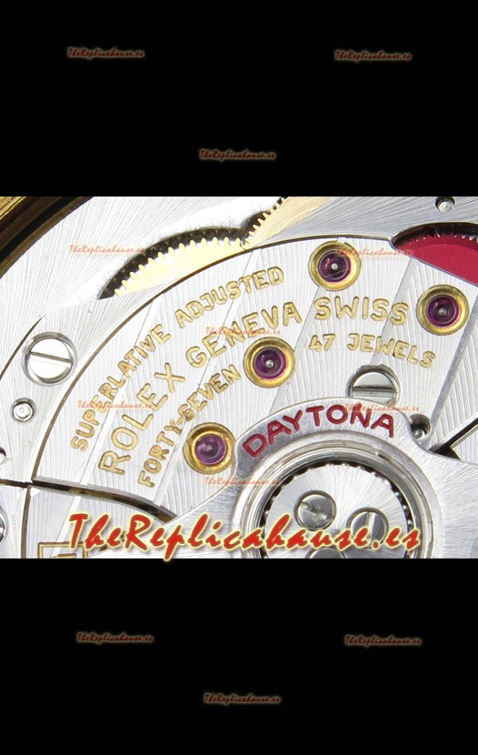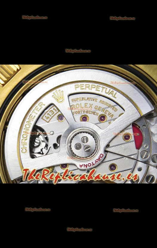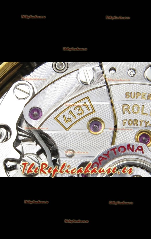 Genuino Movimiento Cal.4131 construido desde cero sin modificaciones, Platos y Rotores chapados en Platino como en el Original. El mismo Movimiento que encuentras en los Relojes Rolex Daytona
