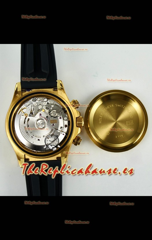 Genuino Movimiento Cal.4130 construido desde cero sin modificaciones, Platos y Rotores chapados en Platino como en el Original. El mismo Movimiento que encuentras en los Relojes Rolex Daytona